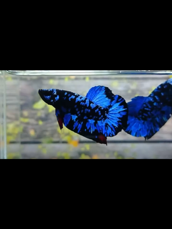 The Avatar Galaxy PK Betta is a vibrant short-finned Betta featuring a dark base body—usually deep blue or black—covered in iridescent galaxy-like speckles of blue, turquoise, white, and red. Its short, muscular Plakat fins highlight its color contrast beautifully, allowing the fish to move with precision and power. Selective breeding has refined the Avatar Galaxy line to enhance its metallic sheen and scattered, starry patterning, making each fish truly one of a kind.