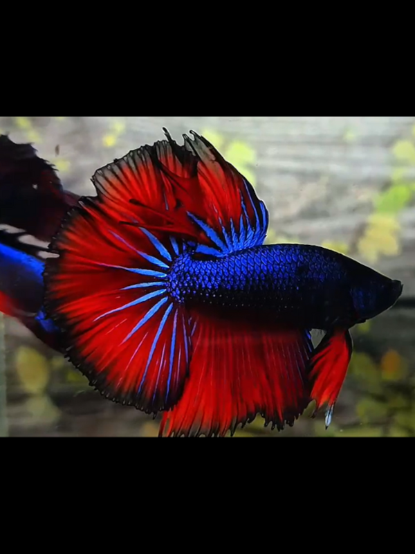 The Royal Blue | Red Sky HM Betta is a regal masterpiece of color and form. With a deep royal blue base that glows like polished sapphire, this Halfmoon variety bursts into life with fiery red fins that spread in a perfect 180° arc. The contrast of cool and warm tones captures the dramatic beauty of a sky transitioning from day to dusk.
