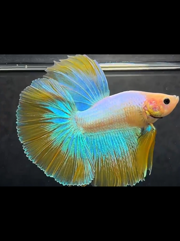 The Yellow Green Maskot HM Betta is a breathtaking Halfmoon variety that radiates warmth and vibrancy. Its luminous yellow body blends seamlessly into shimmering green highlights, crowned by the distinctive Maskot pattern — a bold metallic mask across the face that gives this fish its unique, expressive charm.
